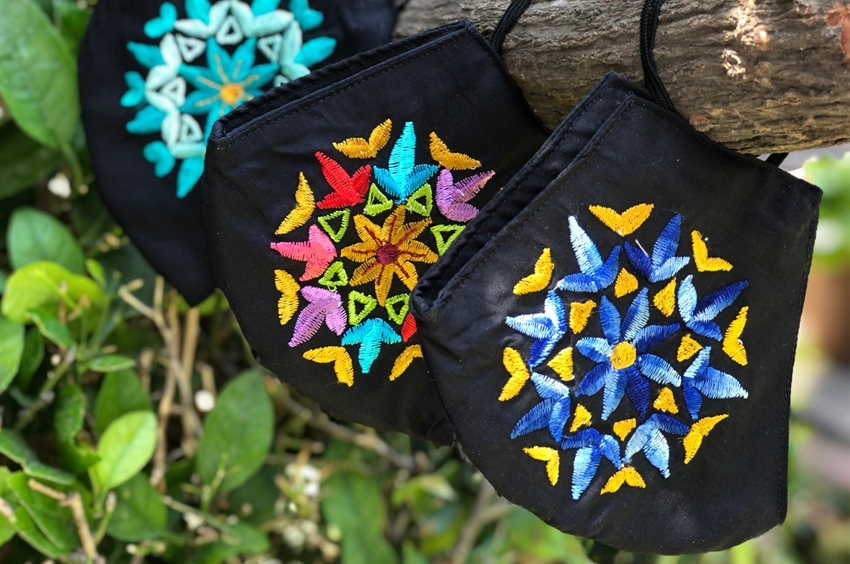 Cubrebocas con bolsita Bordado en popelina triple capa y bolsa con listón para guardarlo $90.00 pesos